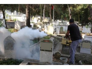 Edirne Belediyesi Veteriner İşleri Müdürlüğü Mezarlıklar Birimi tarafından, bahar aylarının gelmesi ile birlikte mezarlık ilaçlamaları başladı.