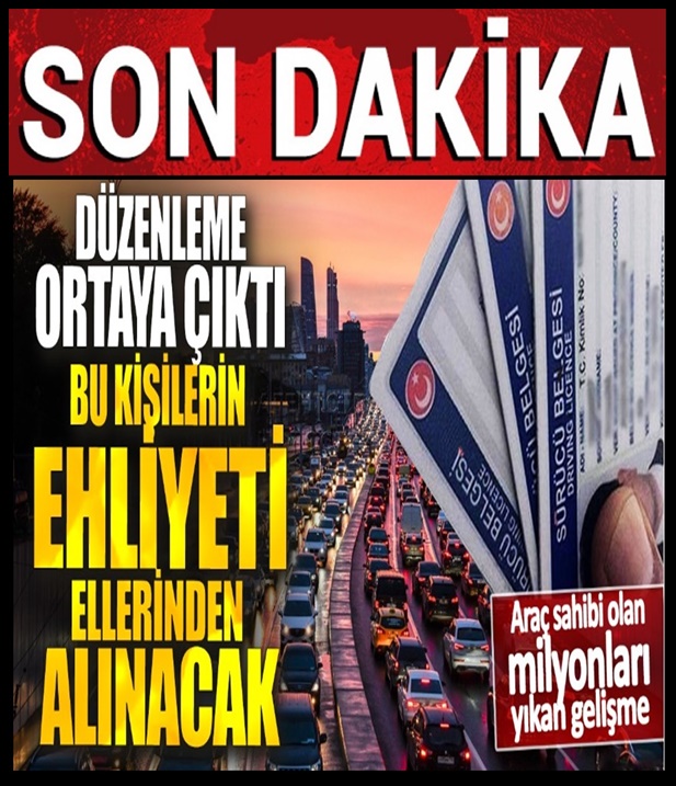 25 Nisan 2024 Perşembe 22:19Araç sahibi olan milyonları yıkan gelişme: Ehliyetleri alınacak Karayolları Trafik Yönetmeliği'nde milyonlarca sürücüyü etkileyecek önemli bir değişikliği duyurdu. İşte detaylar... Haberimizin devamını okumak için Lütfen sonraki sayfaya geçiniz..