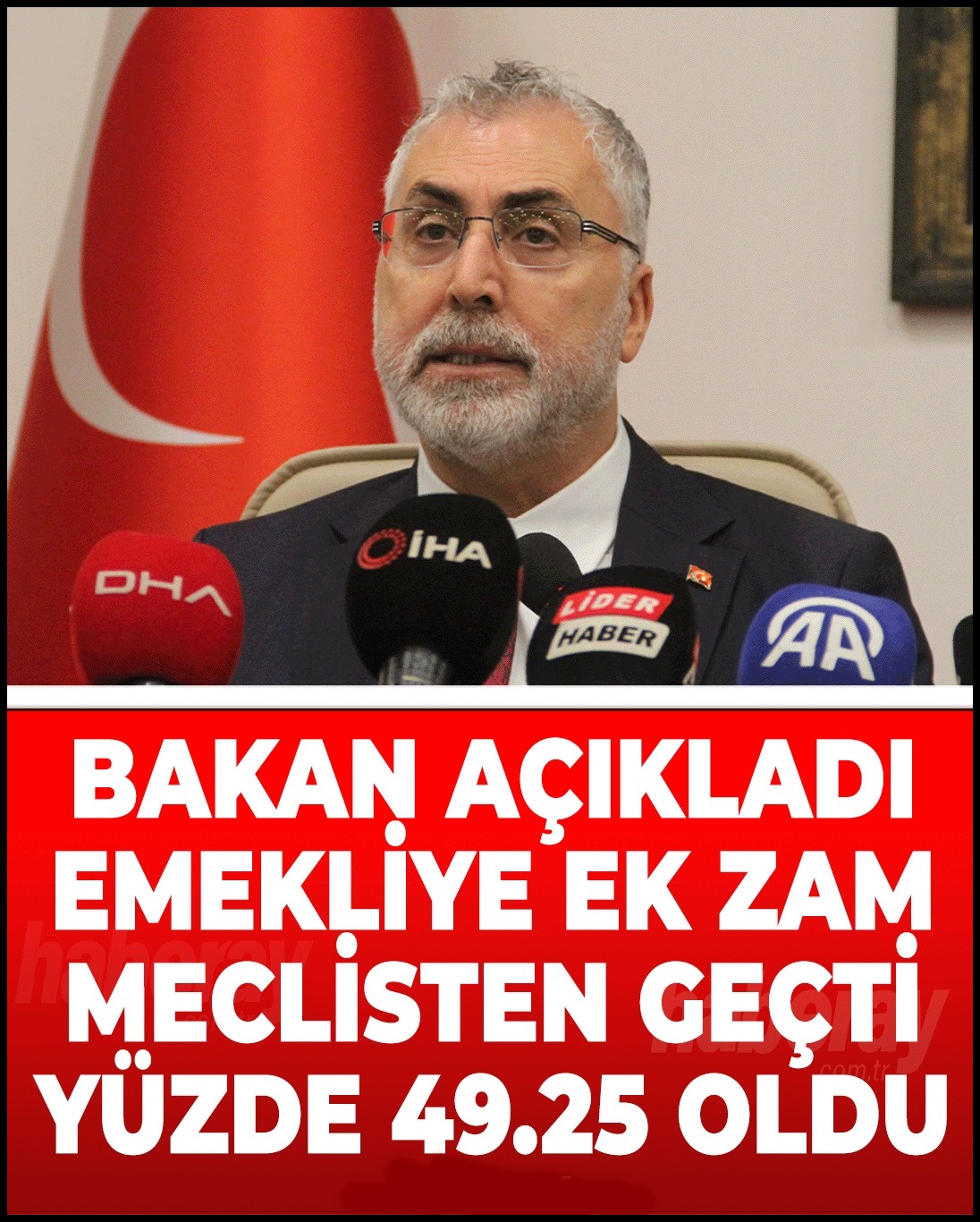 Çalışma ve Sosyal Güvenlik Bakanı Işıkhan sosyal medyadan yaptığı açıklamada "SSK ve Bağ-Kur emeklilerimizin aylıklarının Ocak 2024 itibarıyla 6 aylık artış oranını %49,25’e yükseltiyoruz." dedi. Bakan Işıkhan, SSK ve Bağ-Kur emeklilerine yapılacak ek zamdan kaynaklı farkların, Resmi Gazete'de yayımlandıktan sonra 1 hafta içerisinde ödeneceğini açıkladı. Devamını okumak için lütfen sonraki sayfaya geçiniz..