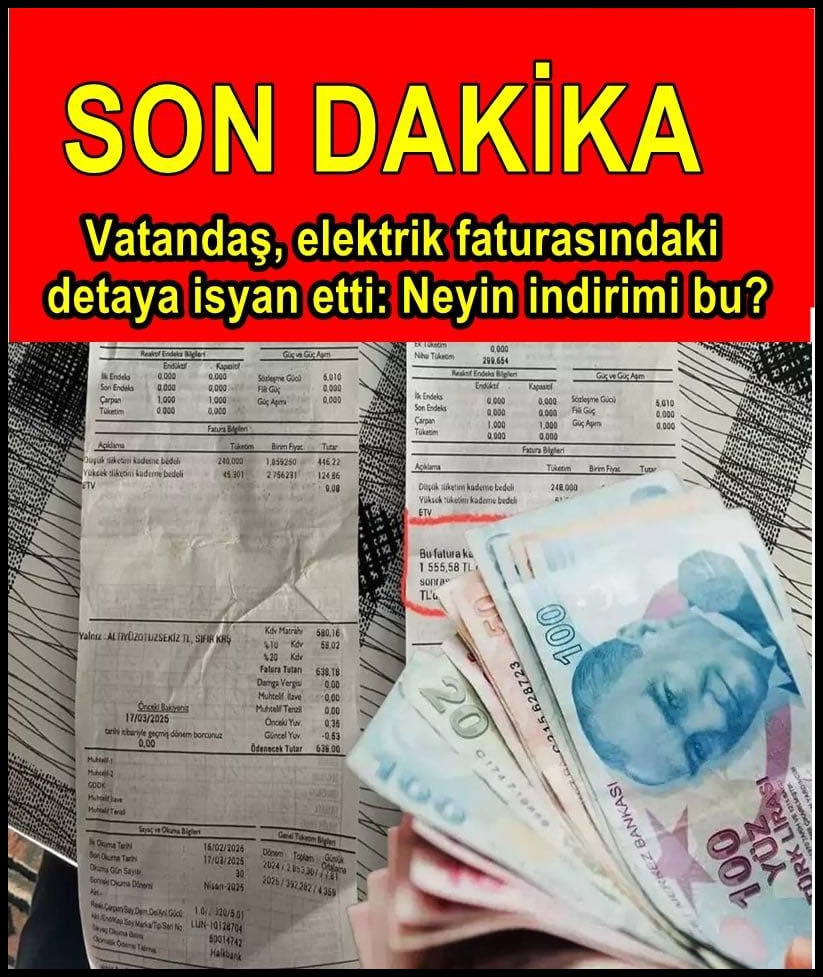 26 Nisan 2025 Cumartesi 00:29Bir vatandaş, son iki ayda hemen hemen aynı elektrik tüketimine rağmen faturadaki ”indirim” ibaresine tepki gösterdi. ”İndirim varsa neden artış var?” diye soran vatandaşın tepkisi kısa sürede gündem oldu. Haberin Devamını okumak için Lütfen sonraki diğer sayfaya geçiniz..