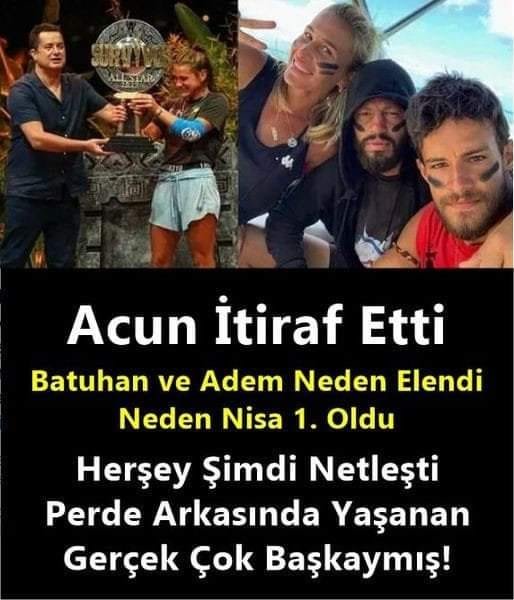 13 Temmuz 2022 Çarşamba 23:48Acun Ilıcalı Survivor’da Nisa’nın neden 1. olduğunu, Adem ve Batuhan’ın asıl elenme nedenini ilk defa anlattı. Perde arkası çok başka çıktı. Sosyal medya bunu konuşuyor..