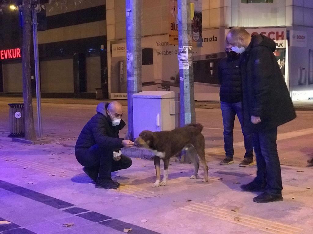 Düzce’de sokağa çıkma kısıtlamasında bu defa emniyet müdürü denetime çıktı. Korona virüs ile mücadele tedbirleri kapsamında polis ekipler sürekli olarak hem tedbirleri hem de Düzcelilerin can ve mal güvenliğini korurken Emniyet Müdürü Mehmet Ali Akkaplan da sokaklarda emniyet müdür yardımcıları ve şube müdürleriyle alınan tedbirleri kontrol etti. Akkaplan ile şube müdürleri kontroller sırasında sokak köpeklerini de elleriyle beslediler.