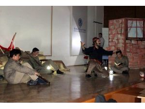 Lise ve tıbbiyeli öğrencilerin, sınıfça Çanakkale’ye savaşmak için gitme kararları, sınıfları boşaltmaları, cephede şehit olan lise ve tıbbiyeli isimsiz kahramanların hikayeleri, Çanakkale’de cephede olmaması gereken ülkenin okumuş beyinlerinin hikayelerinin anlatıldığı “Bekle Bizi Çanakkale” oyunu seyirciler tarafından ilgi ile izlenirken büyük alkış aldı.