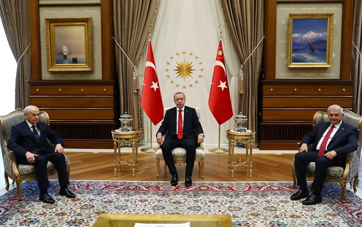 Cumhurbaşkanı Recep Tayyip Erdoğan ve MHP Genel Başkanı Devlet Bahçeli Cumhurbaşkanlığı Külliyesi'nde bir araya geldi. Görüşme, 35 dakika sürdü. 24 Haziran seçimlerinin ardından Bahçeli, Erdoğan’ı telefonla arayarak tebrik etmişti. İki lider, seçimlerin ardından ilk kez yüz yüze bir araya geldi.