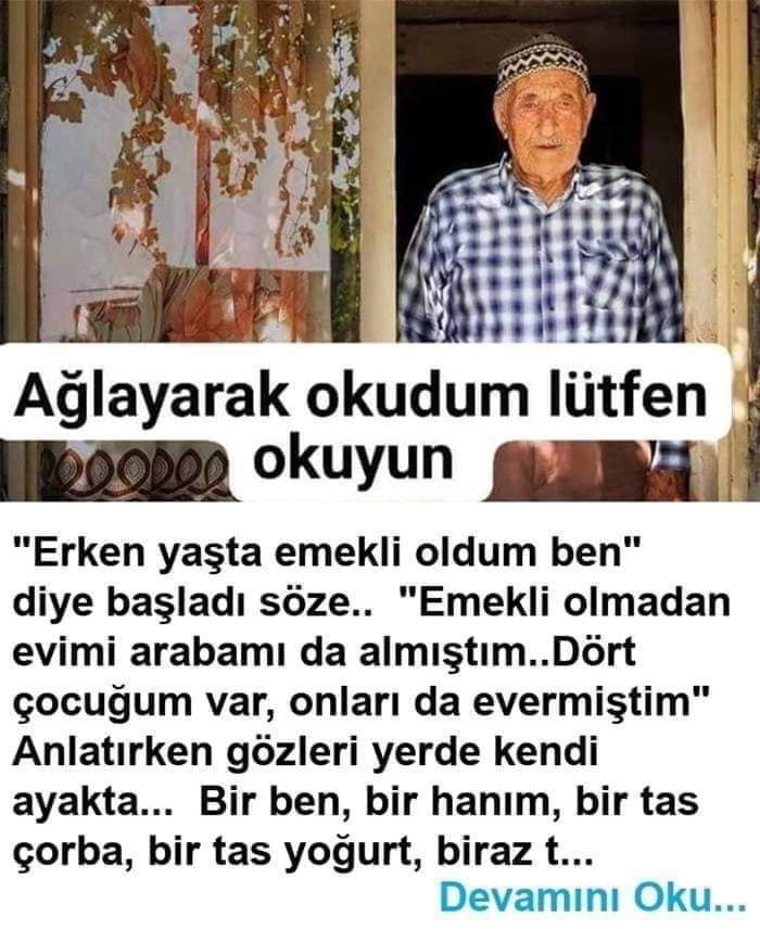29 Ocak 2023 Pazar 22:15"Erken yaşta emekli oldum ben" diye başladı söze.. Emekli olmadan evimi arabamı da almıştım..Dört çocuğum var, onları da evermiştim" Anlatırken gözleri yerde kendi ayakta... Bir ben, bir hanım, bir tas çorba, bir tas yoğurt, biraz turşu.. Gahersiz (kahırsız) ayağımızı uzatıp yaşardık.. Ama daha ne yaşımız var ne yasımız çok şükür. Hanım gezelim ne işimiz var der, Yok dedim.. Paramız var yahu elimiz ayağımız tutuyorken şu kaplıcalara gidelim der, yok derdim.. Şöyle bir yürüyelim der, Yok derdim. Beş lira harçlık ister, iki lira verirdim.. Neden bilmem onun istediği kanalı bile açmazdım. Son beş altı senedir de onunla uyumazdım.. Telefonla konuşsa uzatma kapat, Bir komşuya hamur pişirip vermek istese tantana çıkarırdım.. Devamını okumak için Lütfen sonraki sayfaya geçiniz..