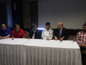 Önümüzdeki Mayıs ayında Ukrayna da yapılacak Avrupa Yıldızlar şampiyonasına hazırlanan millilere moral ve motivasyonun yanında kamp süresince her türlü sağlık desteği için ziyarette bulunan Genel Sekreter Prof.Dr.Fazlı Erdoğan’ı Milli takım hocası Gürkan Sönmez karşıladı.