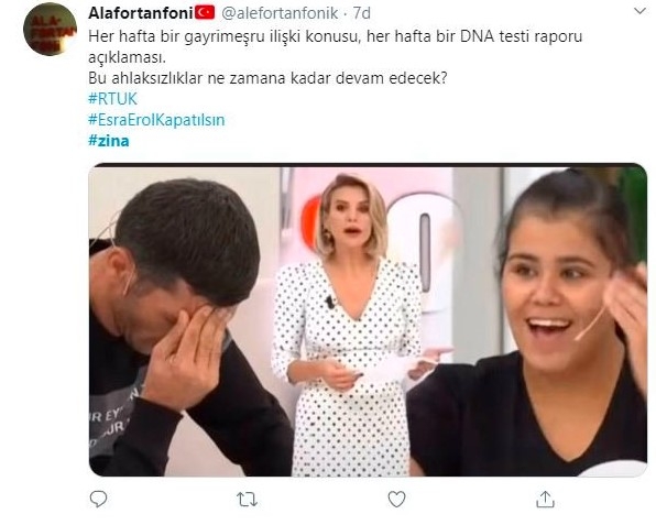 28 Eylül 2020 Pazartesi 10:41KARAR SONRASI SEVİÇTEN HAVALARA UÇTUEsra Erol’un sunduğu Esra Erol’da programına katılan Ferdi Karakuş, DNA testi sonucunda kızının eşi Esra Karakuş’tan değil, eşinden 28 yaş büyük Cengiz isimli komşularından olduğunu öğrenmiş. DNA testi sonucunu öğrenen Esra Karakuş sevinçten havalara uçarak “Şu an şükür elhamdülillah diyorum” ifadelerini kullanmıştı.