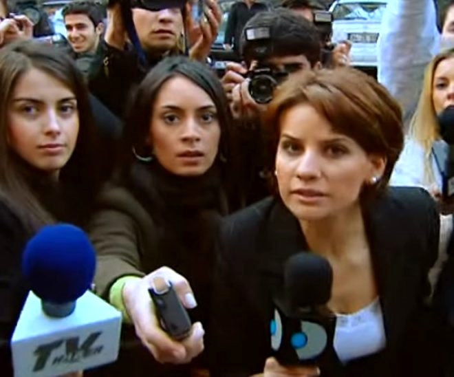 11 Aralık 2019 Çarşamba 20:05Ünlü sunucu Esra Erol, aralarında ünlü oyuncu Melisa Sözen'in de yer aldığı bir muhabir ordusunun arasında yer alıyor.