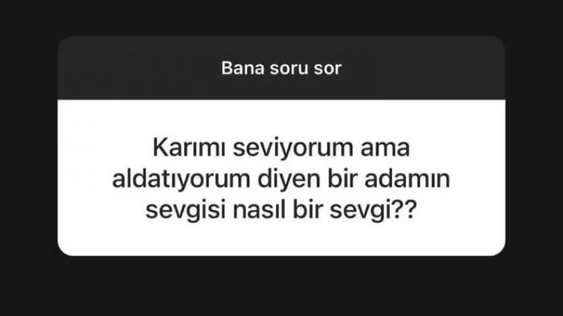 13 Mart 2023 Pazartesi 01:10“KARIMI SEVİYORUM AMA ALDATIYORUM!” Ünlü Psikolog Esra Ezmeci’nin dün akşam düzenlemiş olduğu soru- cevap etkinliğine katılım sağlayan bir başka sosyal medya kullanıcısı ise “Karımı seviyorum ama aldatıyorum” diyen birinin sevgisinin nasıl bir sevgi olduğu konusunda Ezmeci’ye akıl danıştı. Başarılı psikolog, soruya şu şekilde karşılık verdi: “Kendinde her şeyi hak gören bencil bir sevgi. Sevmek böyle bir şey değil. Bence hiç sevgiden bahsetmesin.” 3/4