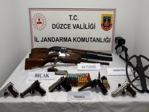 Düzce İl Jandarma Komutanlığınca kaçakçılık ile mücadeleye aralıksız devam ediliyor. Silah mühimmat kaçakçılığı kapsamında Düzce Merkez ilçede icra edilen ev aramasında; 5 adet ruhsatsız tabanca, 3 adet ruhsatsız av tüfeği, 1 adet faturasız metal dedektörü, 59 adet tabanca fişeği ve 60 adet av tüfeği fişeği ele geçirildiği bildirildi.