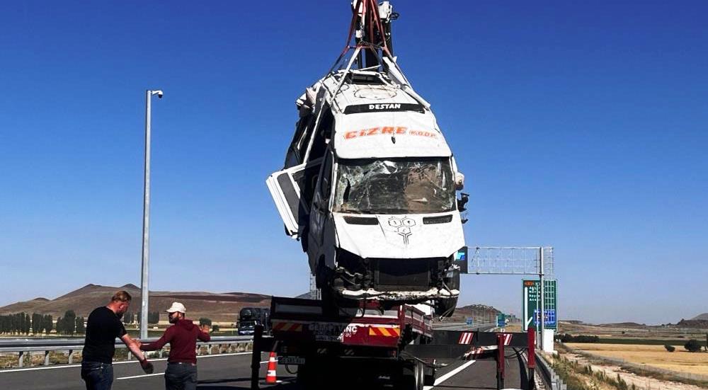 Niğde - Ankara TEM Otoyolunda Şırnak'tan Düzce'ye tarım işçilerini taşıyan Hüseyin Ç.'nin sürücüsü olduğu 73 M 1006 plakalı minibüs Yazıhüyük kavşağında kontrolden çıkarak yol kenarına devrildi.