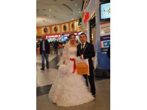 Nikahları kıyıldıktan sonra Deepo Outlet Center’ı ziyaret eden gelin ve damat, ziyaretçilerin yoğun ilgisi ile karşılaştı.