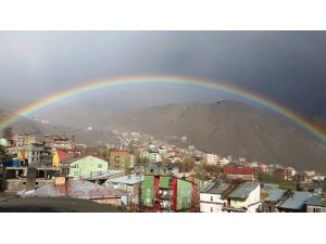 Hakkari’de yağışların ardından oluşan gökkuşağı şehir merkezinde seyrine doyumsuz ayrı bir güzellik kattı.