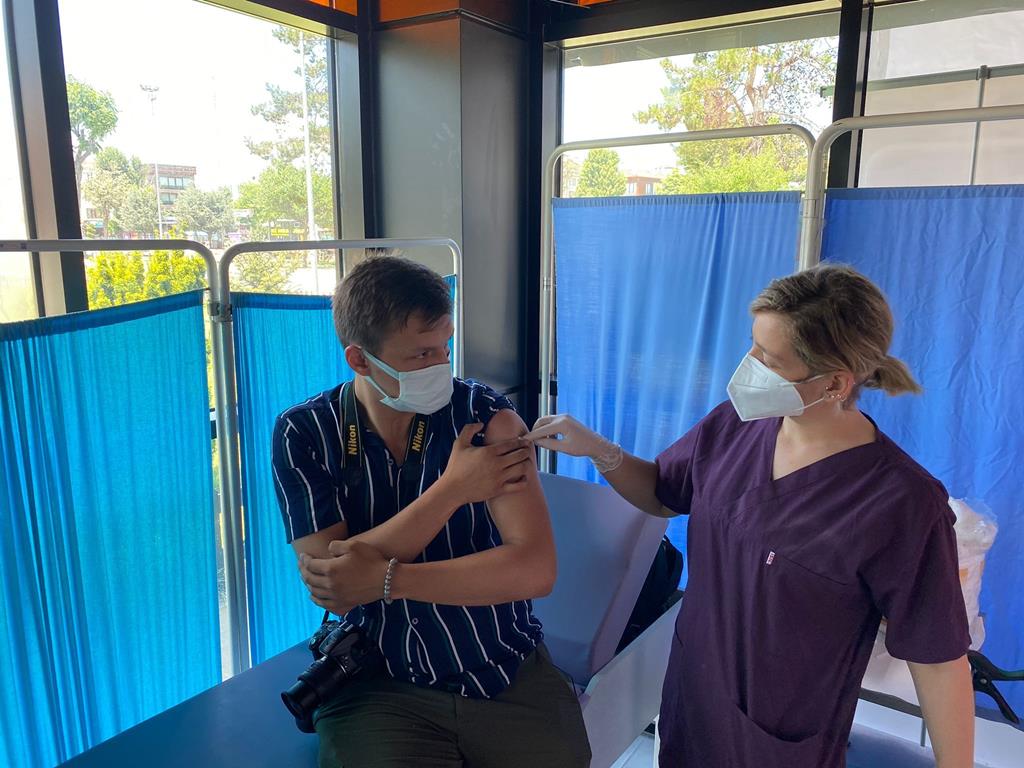 Gazeteciler Selçuk Akyol ve Cem Ali Kuş, sıralarının geldiğini fakat aşı olamadıklarını belirterek haber için geldikleri Covid-19 Aşılama Merkezi’nde aşılarını oldu. Gazeteci Selçuk Akyol yaptığı açıklamada, “Korona virüsün zorlu sürecinin ardından aşı olduk. Aşı hastalıkla mücadele noktasında ciddi anlamda etkisi olan ve hastalığın bitmesinde önemli faydaları olacak bir yöntem. Herkese tavsiye ediyoruz, hiç acımıyor. Burasıda çok iyi, tam şehir merkezinde insanların ulaşabileceği bir yer. Buraya haber için gelmiştim. Randevu almadım geldim aşımı oldum. Aşı olmak istiyorum dedim sağ olsun arkadaşlar aşımı yaptılar. Burada herhangi bir zorlukla karşılaşmadım” dedi.