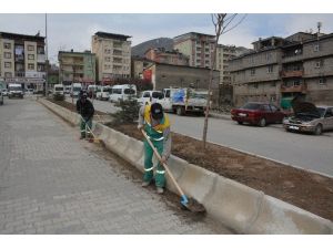 Hakkari Belediyesi Çevre ve Temizlik İşleri Müdürlüğü tarafından kentteki refüjlerde biriken çöpler temizleniyor.