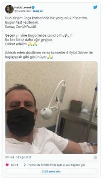 29 Ağustos 2022 Pazartesi 23:07Ünlü şarkıcı ve AHBAP Derneği Başkanı Haluk Levent koronavirüse yakalandığını duyurdu.