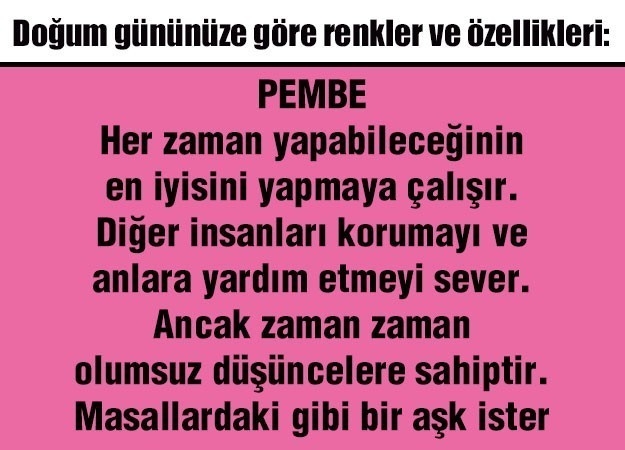 21 Mayıs 2016 Cumartesi 22:04Doğduğunuz tarihe göre hangi renk olduğunuzu bulun ve özelliklerine bakın. Tanıdık gelecek…