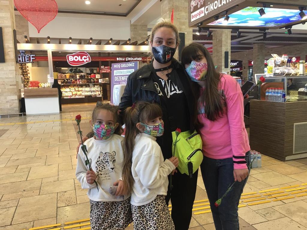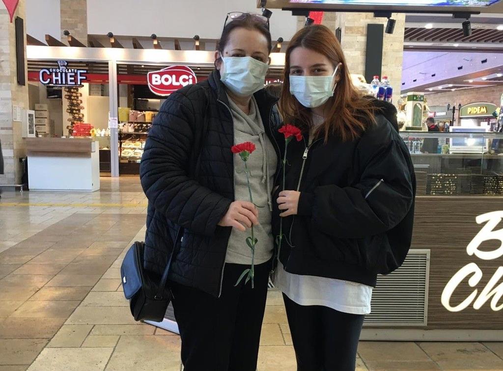 Alışveriş Merkezine gelen kadın misafirlerini kapıda karşılayan AVM çalışanları, "Her adımda dünyayı güzelleştiren tüm kadınların 8 Mart Dünya Kadınlar Günü kutlu olsun" diyerek kadınlara çiçekler vererek günlerini kutladı.