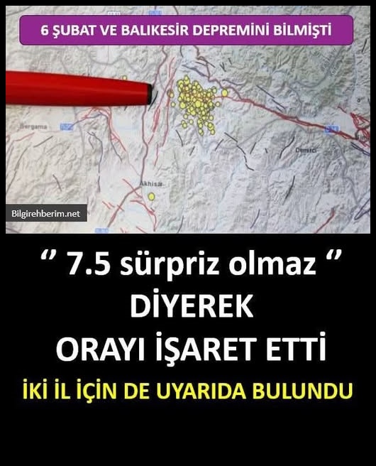 13 Ağustos 2025 Çarşamba 00:13Türkiye günlerdir Balıkesir depremini konuşuyor.6 Şubat depremlerini ve Balıkesir depremini önceden tahmin etmişti! İçelli bu kez o bölgeyi işaret etti: "7,5 büyüklüğündeki deprem sürpriz olmayacaktır".