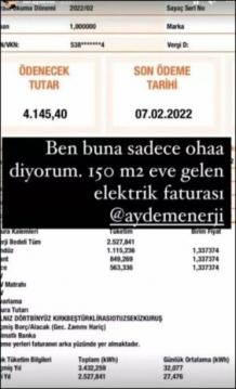 Senarist ve oyuncu Gülse Birsel de geçen günlerde evine gelen 2 bin 550 liralık elektrik faturasını “Ben de kira tadında elektrik faturamı arz edeyim” ifadeleriyle paylaşmıştı.