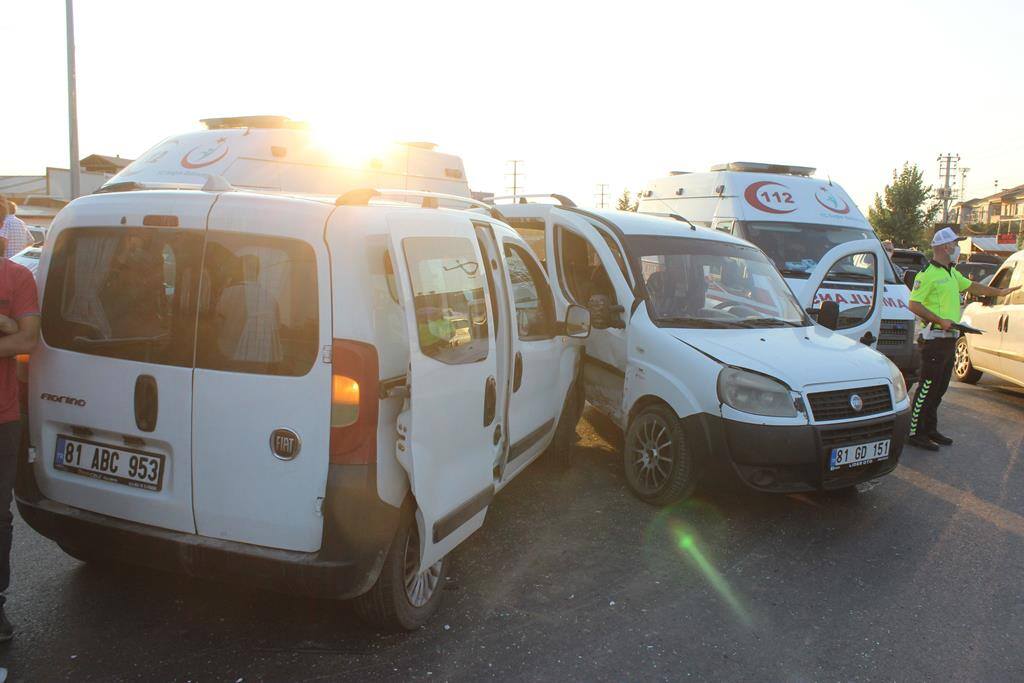 Kaza, D-100 karayolu Doğanlı mevkiinde meydana geldi. Edinilen bilgilere göre, Bolu’dan Sakarya istikametine seyir halinde olan Ömercan Ö. idaresindeki 81 ABC 953 plakalı Fiat marka hafif ticari araç, Doğanlı kavşağında karşı şeride geçmekte olan Furkan T. idaresindeki 81 GD 151 plakalı Fiat marka hafif ticari araç ile çarpıştı.