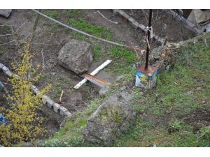 Çorum’un İskilip ilçesinde etkili olan yağışlı hava nedeniyle kopan kayalar evlerin çatışı ve bahçesine düştü.