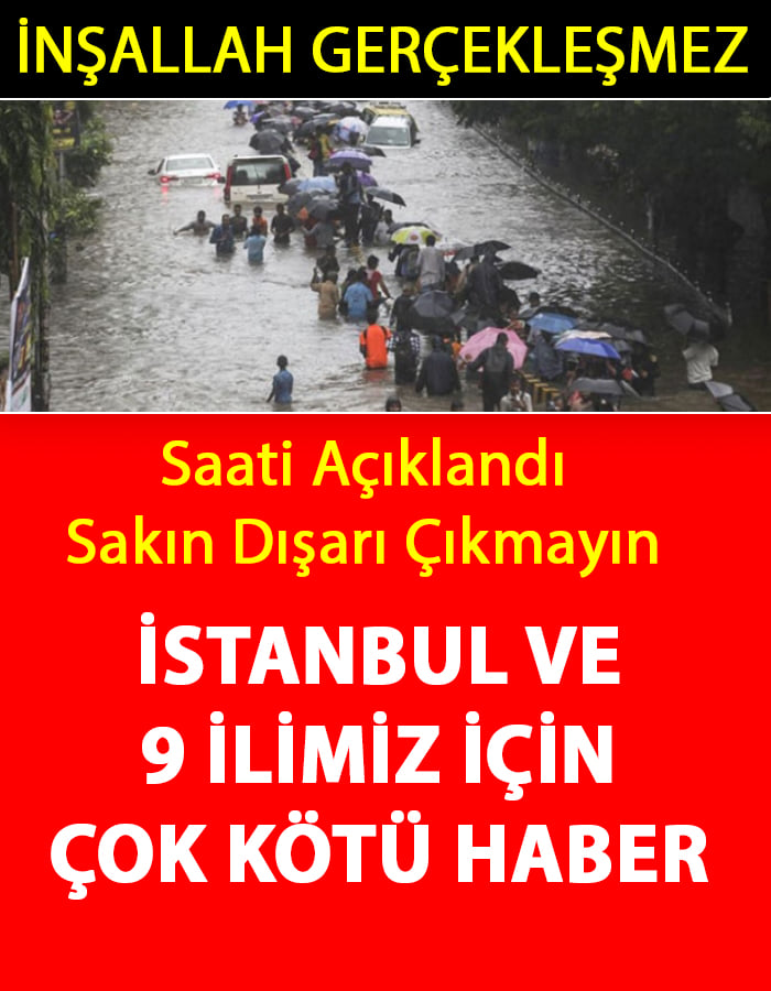 19 Aralık 2020 Cumartesi 19:03Meteorolojiden İstanbul ve 9 İlimiz İçin İnşallah gerçeklemez dedirten son dakika uyarısı geldi. Meteoroloji İstanbul ve 9 İlimiz İçin Sarı Alarm verdi.