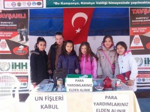 İHH İnsani Yardım Vakfı ve Tavşanlı Kaymakamlığı tarafından başlatılan Suriyeli Mülteciler İçin Yardım Kampanyası’na vatandaşların ilgisi yoğun oldu. Daha ilk günden Tavşanlı halkı mazlumun yanında olduğunu gösterdi. Yetkililerden edindiğimiz bilgilere göre öğle saatlerinde açılan stant da altı saatte 9 bin TL bağış yapıldı. Hatta orta ve lise öğrencileri cep harçlıklarını getirerek savaş mağdurlarına yardımda bulundu.