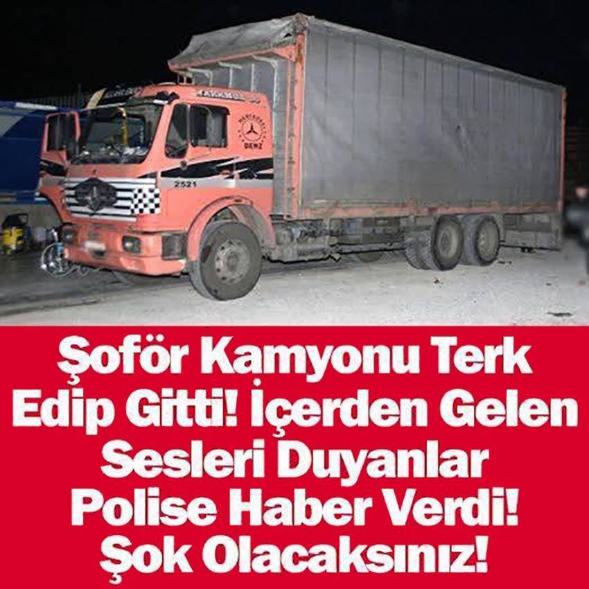 27 Ağustos 2020 Perşembe 22:47Olay, saat 03.00 sıralarında Otokent A Kapısı önünde meydana geldi. Yolda yürüyen bir adam bir garip sesler duydu sonra yanına gelen arkadaşı da aynı sesleri duyunca ürperdiler. Belki bize öyle geliyordur birilerini çağırayım dedi ve bikaç arkadaşını aradı Otopark içerisinde üstü brandayla kapatılmış kamyonun kasasından sesler geldiğini duyan çevredeki vatandaşlar durumu polis ekiplerine bildirdi.