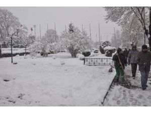 Afyonkarahisar’da dün gece başlayan şiddetli kar yağışı hayatı olumsuz etkilerken, kar kalınlığının yaklaşık 20 santimetreye ulaştığı kentte bahara aldanıp çiçek açan ağaçlar ise adeta kartpostallık görüntüler oluşturdu.