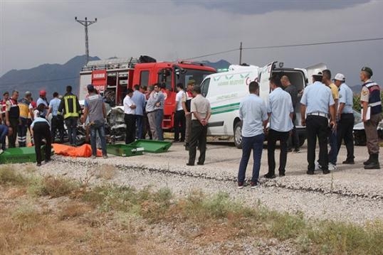 04 Ağustos 2017 Cuma 19:17Sürücüsünün adı belirlenemeyen, içerisinde çocuklarla birlikte 7 kişinin bulunduğu otomobil ile eşini kuaföre götüren damat 27 yaşındaki Tolga Tapramaz yönetimindeki otomobil çarpıştı. Kaza sonrası hurdaya dönen araçlardan biri yoldan çıkarak araziye savruldu. Kazada bir yakınlarının düğünü için Karalgazi Köyü´ne gittikleri öğrenilen otomobildeki Dürdane, Birol, Muhammet, Dursun Şan ile çocuk oldukları belirtilen Havvanur ve İrem Demirci olay yerinde hayatını kaybetti.