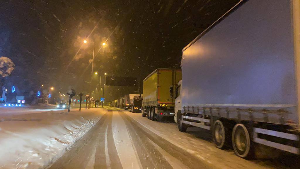 Düzce-Zonguldak karayolu yoğun kar yağışı nedeniyle ağır tonajlı araçların geçişine kapatıldı.