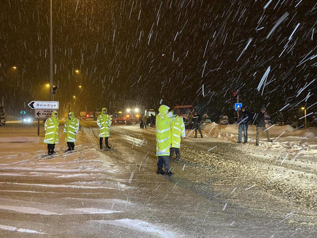 Karayolları ve Düzce Belediyesi ekipleri şehrin birçok noktasında kar küreme ve tuzlama çalışmalarını sürdürürken, akşam saatlerinde etkisini arttıran kar yağışı nedeniyle Düzce-Zonguldak karayolu ağır tonajlı araçların geçişine kapatıldı.