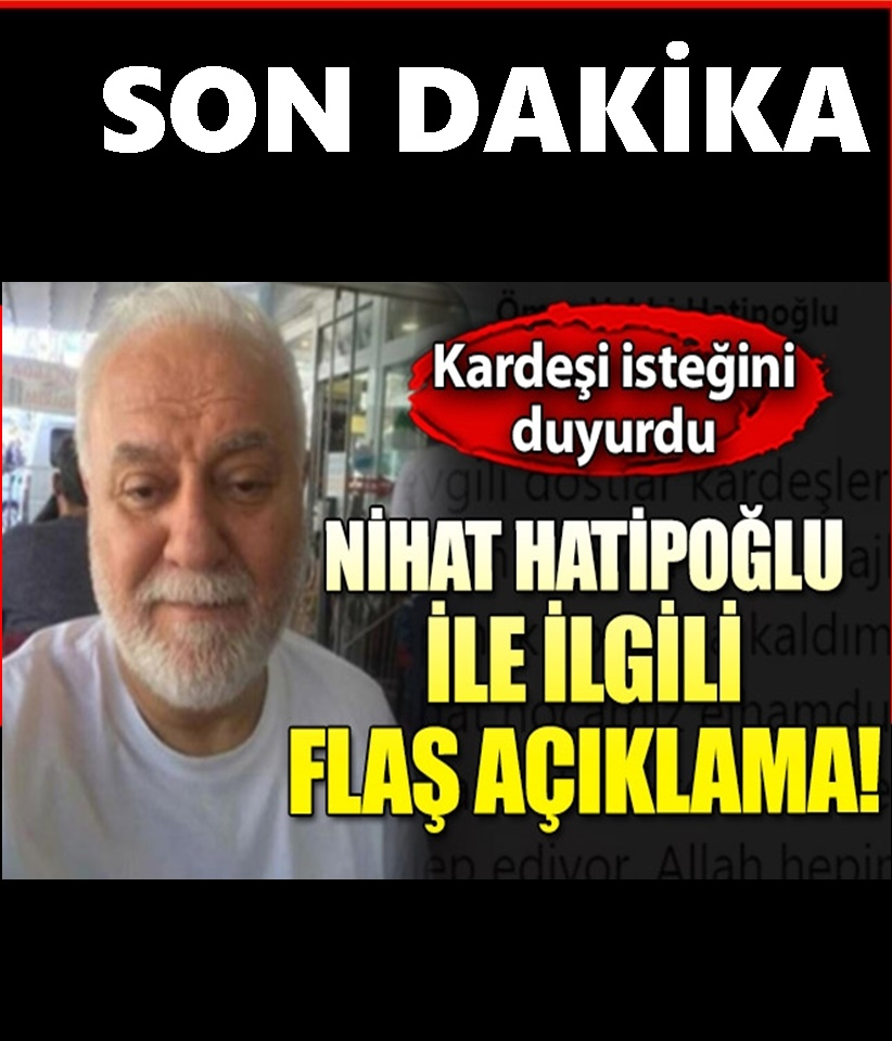 29 Ağustos 2020 Cumartesi 22:25Corona virüse yakalandığını duyuran Nihat Hatipoğlu ile ilgili son dakika açıklaması yapıldı. Ağabeyi Ömer Vehbi Hatipoğlu kardeşinin son durumunu sosyal medya hesabından yaptığı açıklamayla bildirdi.