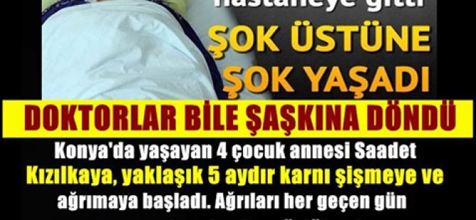 15 Haziran 2017 Perşembe 16:24Konya’da yaşayan 4 çocuk annesi Saadet Kızılkaya, yaklaşık 5 aydır karnı şişmeye ve ağrımaya başladı