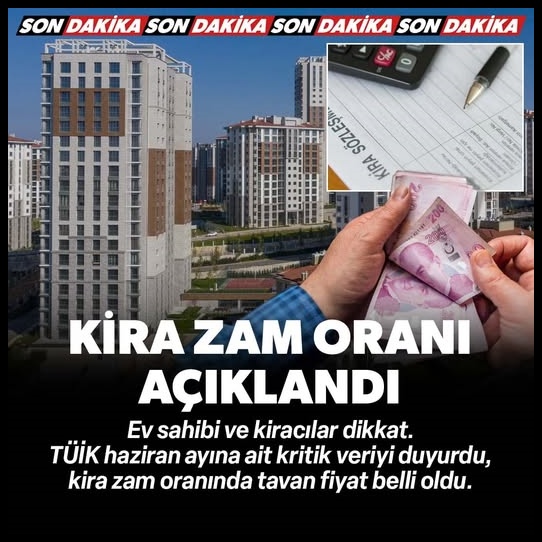 04 Temmuz 2025 Cuma 00:08Kira zam oranı belli oldu: Ev sahibi ve kiracılar dikkat Haziran ayı enflasyon rakamlarının açıklanmasıyla birlikte, Temmuz 2025 kira artış oranı yüzde 43,23 oldu. TÜİK’in yayımladığı verilere göre işyeri kiralarında artış, 12 aylık TÜFE ortalaması esas alınarak belirlendi. 2025 Temmuz ayı kira zammı hesaplaması ev sahipleri ve kiracıları yakından ilgilendiriyor. Peki, TÜİK enflasyon verilerine göre kira artış oranı nasıl hesaplanır? Haberin devamını okumak için Lütfen sonraki sayfaya geçiniz..