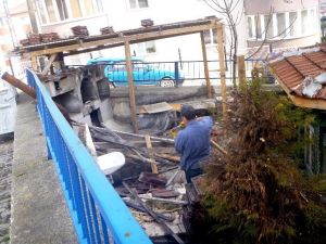 Şubat ayında etkili olan kar yağışı sonrası İsmet Paşa Mahallesinde bulunan toplu konutlarda bir kamelyanın çatısı biriken kar nedeniyle çökmüştü. Çatının çöktüğü günden bu yana bakım ve onarım çalışması yapılmamıştı. Çöken kamelyanın alanında bulunan düşen kiremit, tahta ve moloz parçaları usta tarafından temizlenerek yeni çatı yapımı için çalışma başlatıldı.