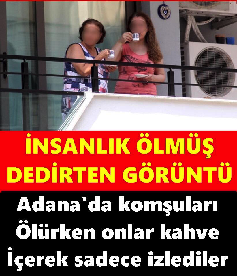 12 Ağustos 2020 Çarşamba 18:28Adana'da polis ekipleri 13. kattan düşüp hayatını kaybeden kadının başında inceleme yaparken, 1. katta oturan komşuların kahve içerek olayı birbirine anlatmaları dikkat çekti. Adana'da bir kişi, rezidansın 13. katından düşüp hayatını kaybederken 1. kat balkonundaki iki kadının kahve içerek birbirine olayı anlatması dikkat çekti.
