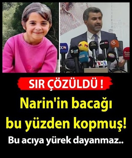 20 Eylül 2024 Cuma 20:35Adli tıp raporunda yeni gelişme yaşandı. Narin’in kopuk bacağında ki sır çözüldü. Haberimizin devamını okumak için Lütfen sonraki sayfaya geçiniz..