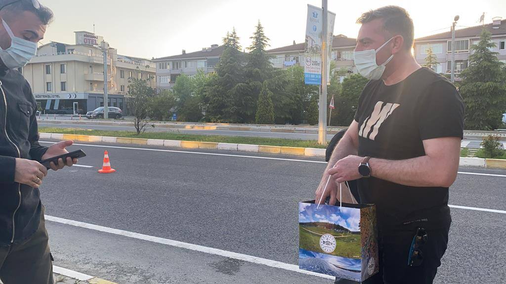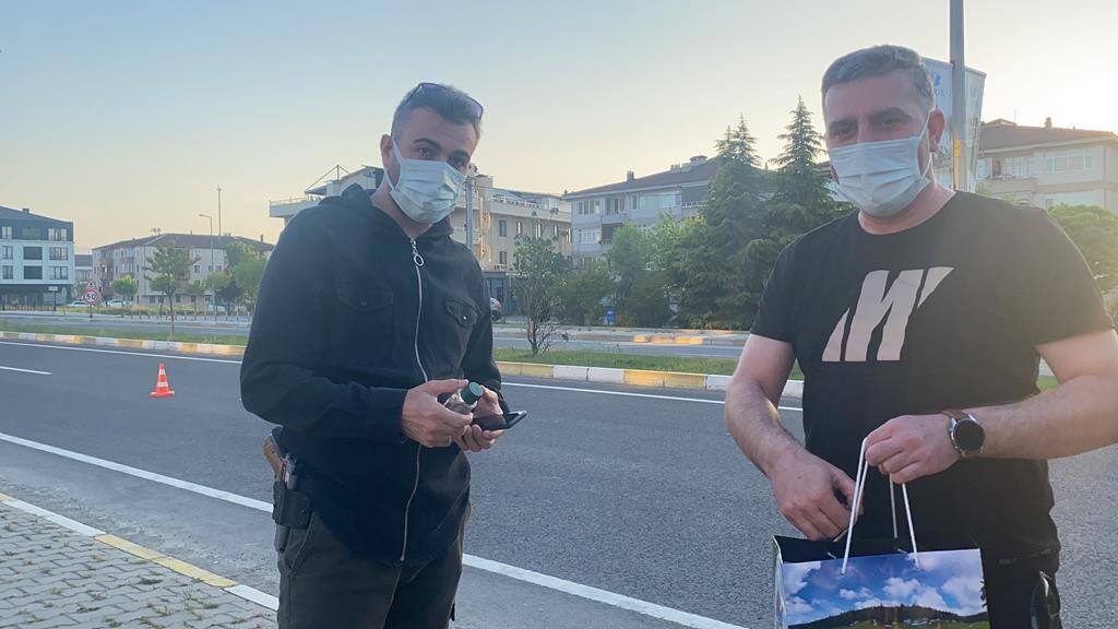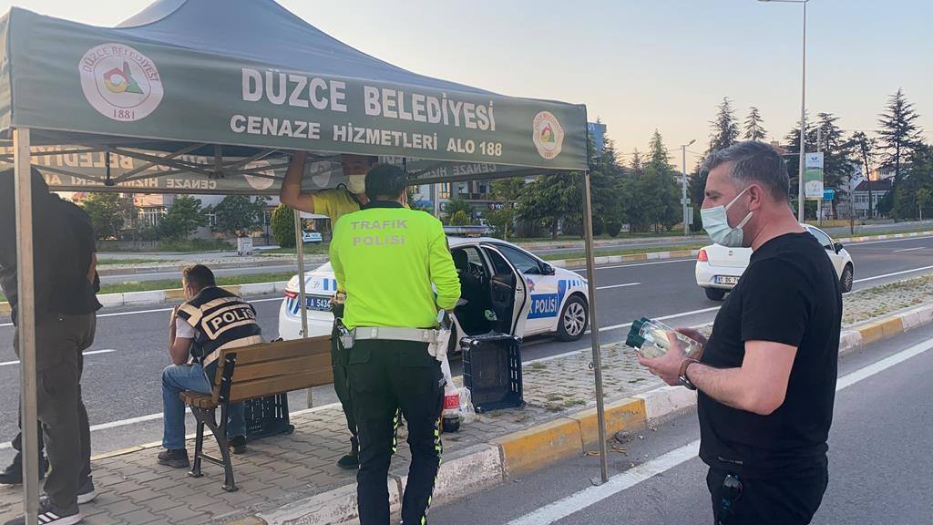 Düzce’de Korona virüs salgını sonrasında uygulamaya konulan tam kapanma nedeni ile şehrin çeşitli noktalarında uygulama noktaları oluşturuldu. Ramazan Bayramı sebebi ile de uygulama noktalarında bulunan Polis ekiplerine, Yenitaşköprü Köyü Muhtarı Hüseyin Gür ve köyde bulunan Marmara Kolonya fabrikası yöneticileri çikolata ve kolonya ikramında bulundu. Polis ekipleri köy muhtarı ve fabrika yöneticisine Ramazan Bayramlarını kutladıkları için teşekkürlerini iletti.