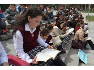 Manisa’da öğrencilere kitap okuma alışkanlığı kazandırmak için hazırlanan ’Okuyan Şehir Manisa’ projesi kapsamında Kula Yunus Emre Kent Meydanı’nda kitap okuma etkinliği düzenlendi.