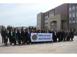 Törende konuşan Manisa Barosu Başkanı Av. Ali Arslan, “Çağlayan adliyesinde rehin alınıp öldürülen savcımız Mehmet Selim Kiraz için üzgünüz ve öfkeliyiz. Savcımıza Allah’tan rahmet, yakınlarına ve yargı camiamıza başsağlığı ve sabır diliyorum. Manisa Barosu terör saldırılarının her şekline karşıdır. Terörist saldırı kimden ve hangi gerekçe ile yapılırsa yapılsın haklılığı tartışılamaz. Yargıya yapılan sözlü saldırılar, hakimlerin, savcıların, avukatların isimleri verilerek yapılan tacizler bu tür kendini bilmezleri cesaretlendirmektedir. İktidar erklerine sesleniyoruz. Yargının üzerinden elinizi çekin. Yargı ile oynamayın." dedi.