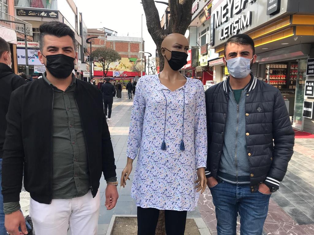 Covid-19 tedbirleri kapsamında alınan kurallara esnaf olarak uyduklarını belirten Mehmet Özcan, vatandaşlarında bu kurallara uymasını istediği konuşmasında, “Esnaf olarak aylar sonra yeni yeni dükkanlarımızı açtık. Bizler de iş yapmaya başladık. Vatandaşlarımız dışarı çıktı. Şu anda mutluyuz. Ama görüyoruz ki bazıları maske takmıyor. Bu durum da bizi üzüyor. Farkındalık yaratmak için de mankene maske taktık ve görülür bir yere koyduk. Vatandaşımız duyarlı olsun. Turuncudan kırmızıya dönmeyelim maviye dönmek varken. Dükkanımızın tekrar kapanmaması için maskesiz birini gördüğümüzde hemen uyarıyoruz. Sosyal mesafeye dikkat ediyoruz. Dükkana fazla müşteri almıyoruz. Gereken ne varsa yapıyoruz.” ifadelerine yer verdi.