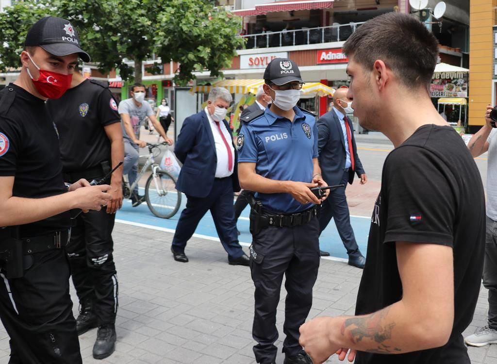Maske takmayan vatandaşlara yönelik uygulamada yüzlerce kişiye 900 lira ceza kesildi. Maskesiz olduğu için ceza yazılan bir vatandaş polislerden kaçmak isterken kovalamaca sonucunda yakalanarak gözaltına alındı.