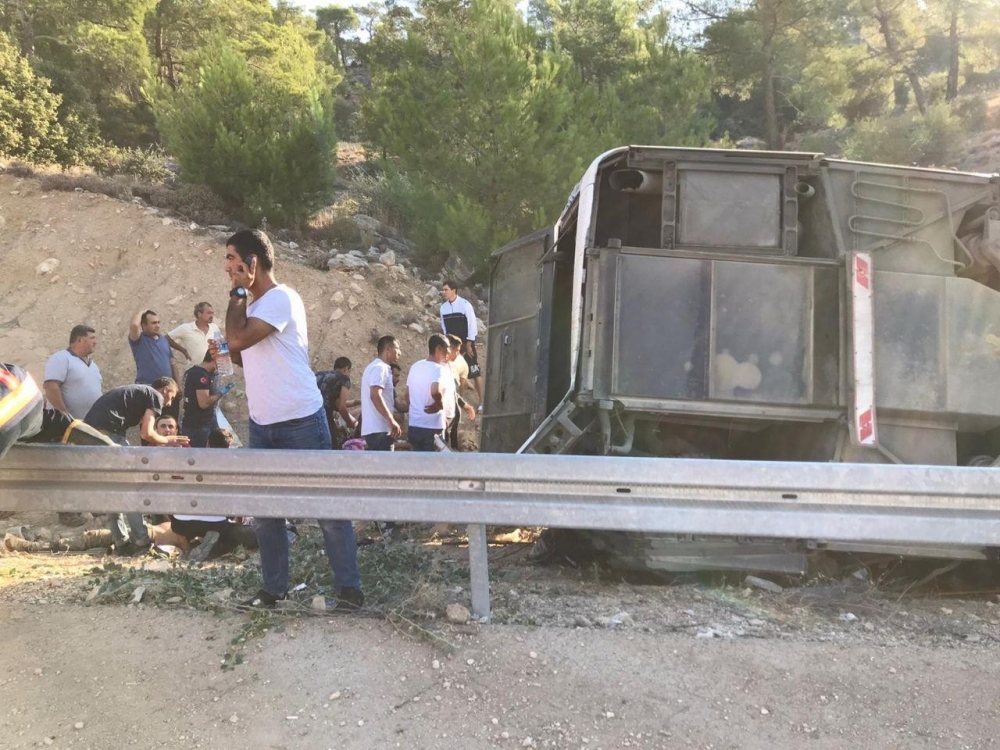 27 Temmuz 2020 Pazartesi 14:19KKTC’ye sevk edilen askerleri Mersin’e götürmek için yola çıkan Alaşehir Sarıkız Turizm firmasına ait otobüs, Mut-Karaman karayolu Zeytinalanı mevkisinde virajı alamayarak şarampole devrildi.