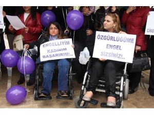 Açıklamanın ardından, engelli kadınlar, mor balonlar uçurdu.