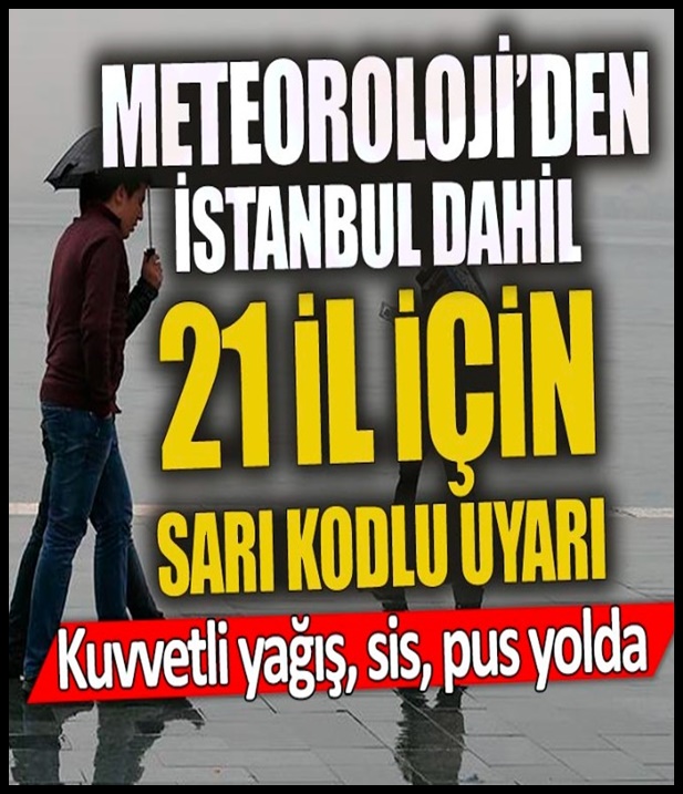 Meteoroloji Genel Müdürlüğü, 21 ile sarı kodlu uyarılarda bulundu.