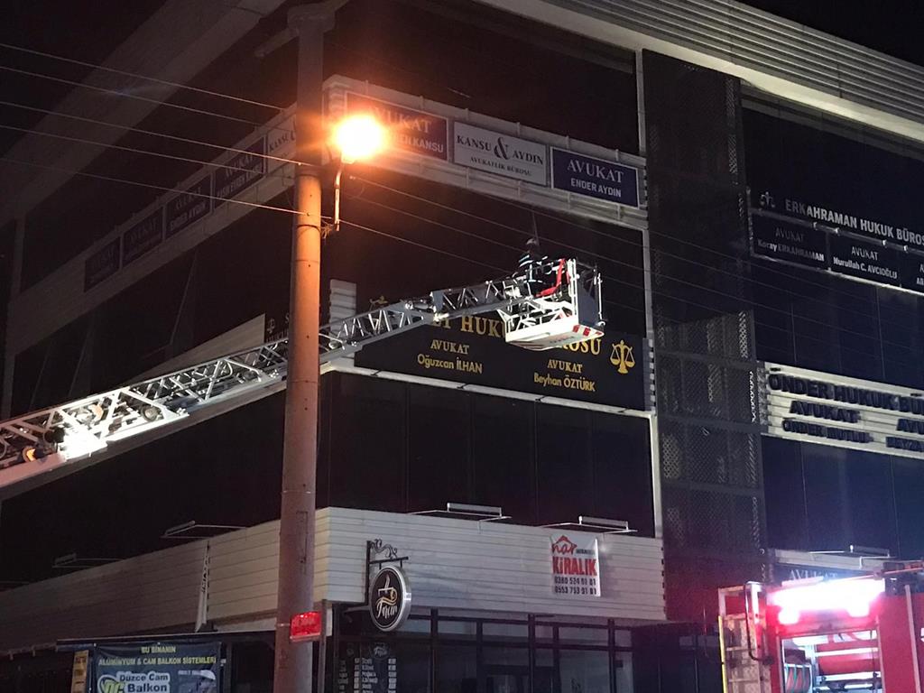 Meydana gelen diğer yangın ise Düzce Kent Merkezinde Fevzi Çakmak Mahallesi’nde Hukuk bürolarının bulunduğu bir iş merkezindeki bir hukuk bürosunda meydana geldi. Çıkış nedeni bilinmeyen yangına Düzce Belediye İtfaiye ekipleri müdahale etti. Kısa sürede kontrol altına alınan alevler büyümeden söndürüldü.