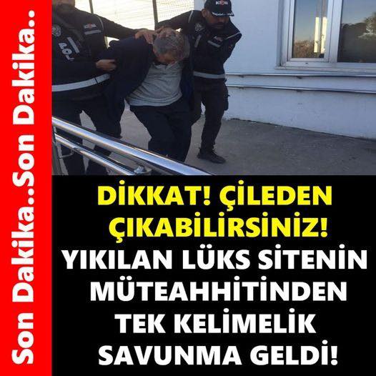 14 Şubat 2023 Salı 23:27Kahramanmaraş merkezli meydana gelen depremlerde Adana’da da çok sayıda bina yıkıldı. Adana’da yıkılan binalardan birisi de 14 katlı Hasan Alpargün Apartmanı oldu. KIBRIS’TA YAKALANIP ADANA’YA GETİRİLDİ Binayı yapan müteahhit baba-oğul Hasan Alpargün ve Hasan Can Alpargün depremin hemen ardından KKTC’ye kaçtı. Hasan Alpargün, gözaltına alındığı Kuzey Kıbrıs Türk Cumhuriyeti’nin (KKTC) başkenti Lefkoşa’dan Adana’ya getirildi. “MUKADDERAT” Gemiyle Mersin’e getirilerek Adana Emniyet Müdürlüğü Kaçakçılık ve Organize Suçlarla Mücadele Şubesi ekiplerine teslim edilen Alpargün, Adana Adli Tıp Biriminde sağlık kontrolünden geçirildi. Adli Tıp Biriminin girişinde Alpargün, inşa ettiği binaların yıkılmasıyla onlarca kişinin hayatını kaybettiğinin gazeteciler tarafından hatırlatılması üzerine, “Mukadderat.” diyerek yanıt verdi.