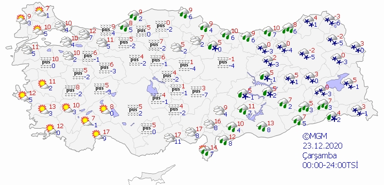 23 Aralık 2020 Türkiye geneli hava durumu tahmin haritası